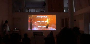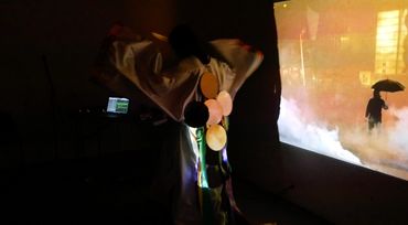 The performance begins with a field recording from a shipyard in Hong Kong and a Cantonese folk ballad; the sound of woodblock, triangle and vocals are subsequently looped with a looper pedal to create a soundscape. Incense burn during the performance. Words were spoken during the overlaying of the sound elements. It culminates with a repetitive swirling movement in the performance area when the soundscape has been created. The performance resembles a ritual as well as a lamentation. Duration c. 15 min